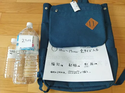 34cm×48cmのリュックだと簡単に入る