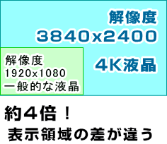 4K液晶ディスプレイだとな、表示範囲がめっちゃ広くなるんじゃよ