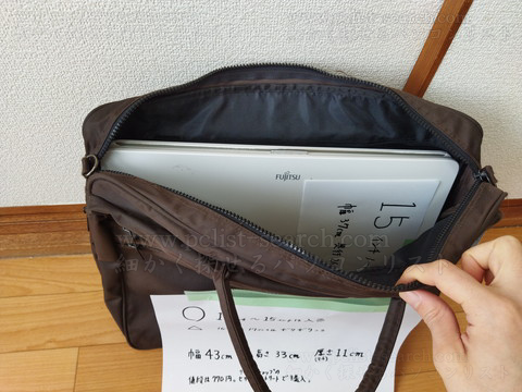 14インチより大きな15インチノートパソコンも楽勝で収納できた